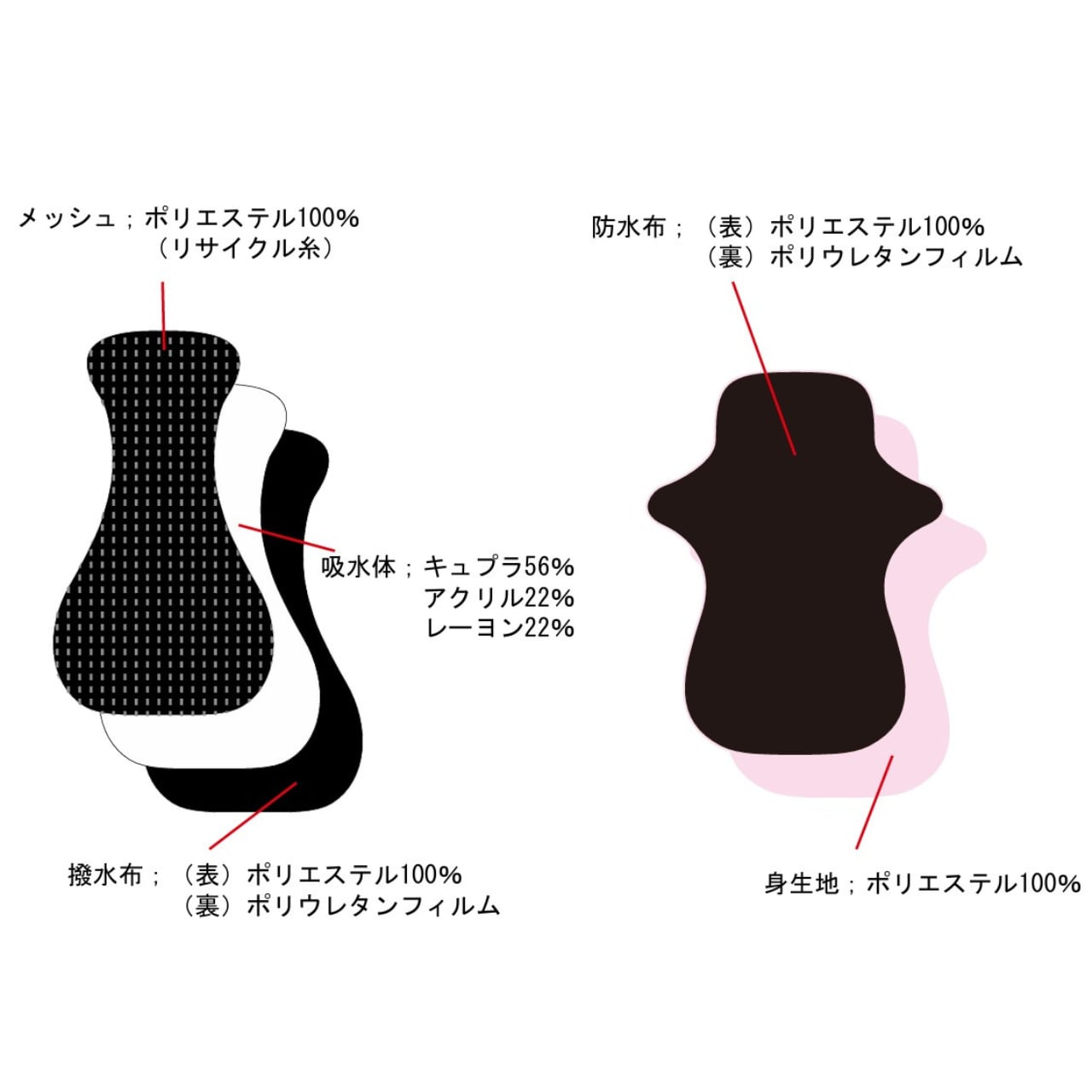 ※洗濯直後、パッド中央部の吸水体部分の生地が中央からズレることがあります。これは使用中のモレを防ぐための構造による仕様です。