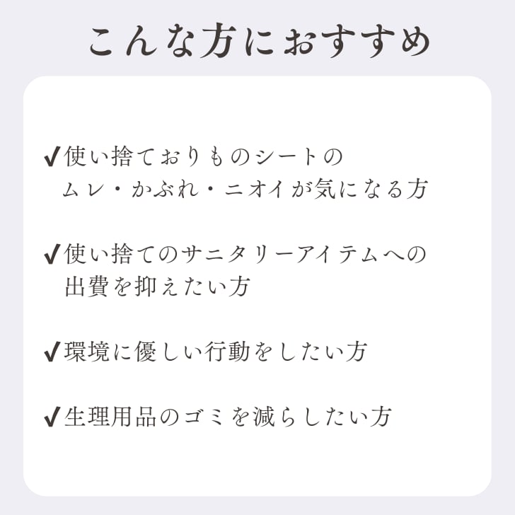 おりもの・軽い尿モレ・汗など、下着の不快感を軽減。