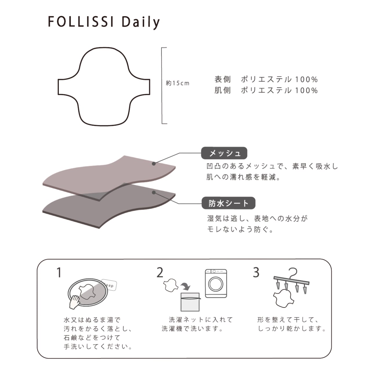 肌へのやさしさと快適さにこだわった、FOLLISSI(フォリッシ)の布ライナーです。