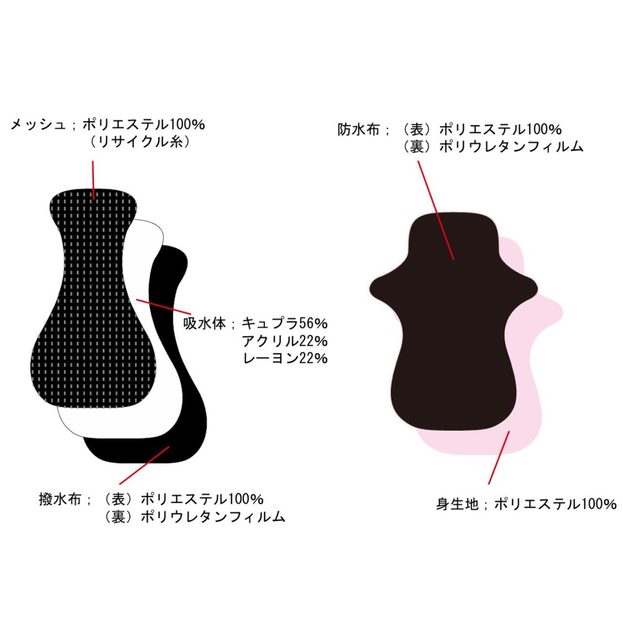 ①普段お使いのショーツにつける(裏側のボタンで固定)