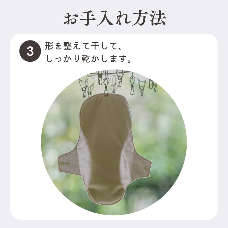 ①普段お使いのショーツにつける(裏側のボタンで固定)